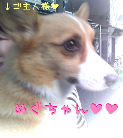 どうしても正面向いてくれなかったので、ご主人様が抱き上げてくれたv