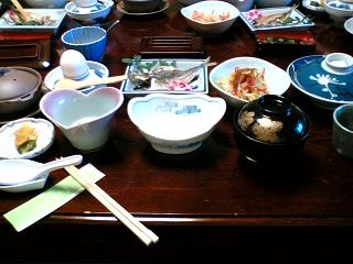 時間ぎりぎりまで寝て(倒れて)、布団は即撤去→朝ご飯。