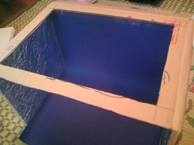 側面、背面、底面をセロテープで仮止めするとこんな感じになりました。