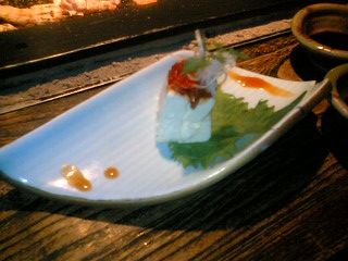 クリームチーズ角切り5~6個の上にチャンジャがちょろって乗ってるだけ。