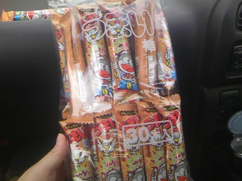 買ったモノは・・・画像のうまい棒チキンカレー味30本。