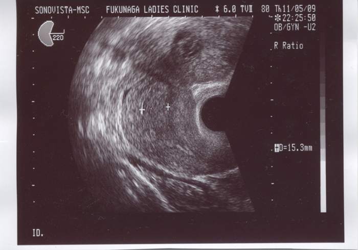 問診票途中のまま、体温計刺したまま、超音波検査台へ。