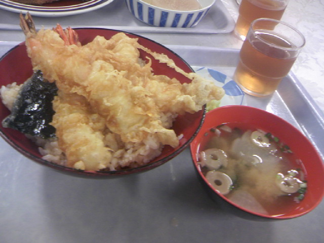 昼ご飯はエビ3匹の天丼、うます。