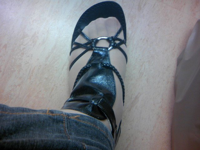 画像のサンダル1足¥1380、うちにしては珍しいデザインに手を伸ばした。