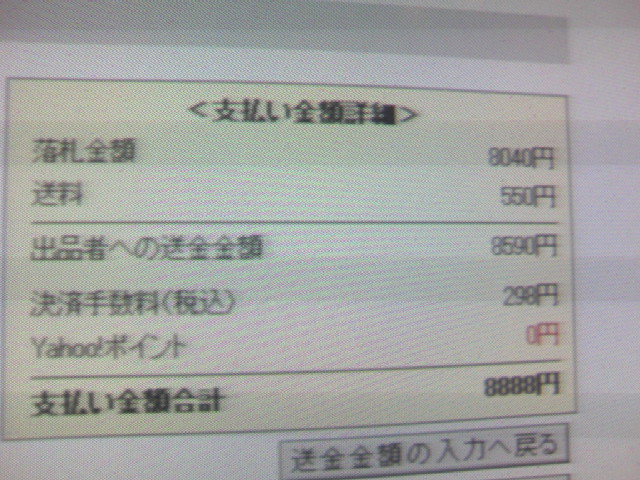 ヤフオクで買い物した時の支払合計金額が「8888円」